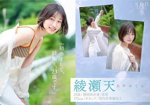 - Official work page (MGS): 天才的エロさ。クールに見えてよく笑うハニカミ笑顔の高身長女子。綾瀬天 AV DEBUT