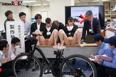 浣腸噴射式「2穴交互挿入アクメ自転車」の 商品発表会 の担当になってしまった為に、自分のお尻に様々な器具を挿入したり、浣腸をしながら業務のために奮闘する、2名のSOD女子社員。株主の前でアナルとマ○コにWハリガタを交互挿入し、自転車のプレゼンを行いながらもイキまくり!潮吹きまくり!浣腸噴射しまくり!