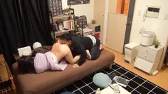 マッサージと称してボディタッチ。 戸惑い気味だけれども眠気で身体が動かないのか無抵抗。 そのまま首筋にキス。エッチな気分になってきたのか、肩に手を回して口同士のキスに発展。服も脱がず静かに愛撫していたのが、いつの間にか気持ちが高まって、顔面騎乗位、器用に腰だけクイクイ激しく動かすいやらしい騎乗位まで飛び出す始末。 最後はガンガン突きながら電マで攻撃からの口内発射。