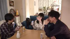プレイ内容:遠隔ローター仕込まれる、イチャイチャ、ベッドに移動、マ●コ電マ責め、胸揉み、乳首いじり、乳首舐め、クンニ、フェラ、バックで挿入、立ちバック、騎乗位、背面騎乗位、正常位、胸射。 あらすじ:男二人に女一人でU●Oやトランプに興じる。そんな中、遠隔ローターを仕込まれモジモジする彼女。眠った男、そして寝落ちしてない男女はイチャイチャの末にSEXへ…。