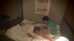 寝取られ温泉旅行 夫の隣で声を殺してイキまくる美人巨乳妻 生中出しマッサージ4時間