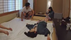 社員旅行で行った先の旅館。最初はみんなで盛り上がっていたのに気が付けば女子2人と男子2人だけの空間に。ぐったりしそうな人妻社員2人に待ったなしで襲い掛かる2人の男子社員。三流会社の人材などこんなものか。
