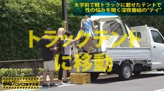 女子大生をナンパしてトラックテントでインタビュー&SEX。テントの中でSEXしちゃうことに応じちゃうエッチな女子大生は、電マでマンコをグチョ濡れにしちゃうし、デカチン男優のピストンで中イキまでしちゃうSEXの素質ありありなエロエロJD。 白昼のテント内でSEXして気持ちよくなっちゃうし、ザーメンをお口で味わってくれるエロ娘ちゃんです。