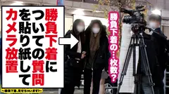 女なら一着は持っているという勝負下着。街行く女性の勝負下着を見てみたい!その欲望を叶えるためにこんな企画を考えてみました...。本日は新宿にカメラを置いて質問に答えてくれる女性を探します。本日勝負下着を見せてくれることになったのはナミさん。早速自宅にお邪魔すると撮影会用の水着が沢山!布面積が少ない水着に着替えて貰うと自慢のGカップがぷるぷる揺れる!水着姿を堪能した後は自慢の勝負下着に着替えて貰います。パープルのエッチな下着を着ると気分も盛り上がってきたのかフェラを始めるナミさん。じゅぷじゅぷと音を立てながら楽しそうにフェラして簡単にスタッフをイかせてしまいました。これでは太刀打ち出来ないので男優を召喚!早速ベッドに押し倒しおっぱいやおま○こに触れていくとすぐにイきそうになってしまう程感度が良いナミさん。下着をズラしてズプリとち○ぽを埋め込めば「気持ちいい‥」とうっとり顔。バックで挿入すれば自ら腰を振ってデカ○ンを堪能し気持ち良さそうに喘いでいます。その後も体位を変えて激しく突き上げセックスを堪能した彼女。もう一着の勝負下着にも着替えて貰って第二ラウンドも堪能しました♪