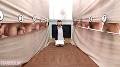 勤務中の看護師がズラ~ッと並んだチ○ポ10本の中から普段看ている患者さんを見つけ出すチ○ポ当てゲームに挑戦!当てれば大量賞金☆ハズレたらデカチン即ハメ罰ゲーム☆今回挑戦するのは、愛嬌たっぷりメチャかわナースの『まい』さん!いつもお世話をしている患者さんのお願いでチャンレンジに参加し、まずは患者さんのチ○ポの形を覚えてもらうために目隠ししながら念入りにタッチ…肉棒達が待ち構える部屋に移動し、チ○ポ当てチャレンジスタート♪見慣れぬチ○ポ群に動揺しながら優しい手コキで必死に担当チ○ポを探すまいさん…精子をぶっかけられながら健闘するも3回のチャンスを全て外してしまいデカチン生挿入確定!突如現れたデカチンにパコられ、「ゴメンなさい…///」と謝りながら潮吹き連続ガチイキ…罰ゲームなのに快楽に溺れながら中出し&顔射され精子まみれになっちゃいまいました☆【街角素人モニタリング】B:85 W:58 H:85