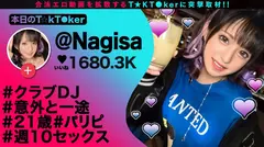 プレイ内容:【1】ラブジュースを飲む、ディープキス、乳揉み、尻揉み、オナニー、ディープキス、乳首しゃぶり、乳首舐め、手コキ、フェラ、立ちバック、騎乗位、対面座位、中出し。【2】乳首舐め手コキ、両手コキ、シックスナイン、背面騎乗位、騎乗位、中出し、ラブジュースを飲む。【3】コスチューム変更、クンニ、バイブ責め、バイブ責めフェラ、バック、立ちバック、ハメ潮、正常位、中出し、お掃除フェラ。 あらすじ:T☆kTokでエッチな動画を投稿するエロ可愛い女にDM(ダイレクトメッセージ)で連絡を取り、その場のノリでしれ~っとSEXまでしちゃおうという、次世代ナンパ企画!!今回のT☆kT●kerはエロさ最凶!ぷる尻小悪魔クラブDJのNagisaちゃん(21歳)_見た目から想像がつきまくる!ヤリマンビッチGALのNagisaちゃんは、SEXのやりすぎで普通のSEXでは満足できない体になってしまったようで…今回も独自のルートで手に入れたラブジュースを持参!インタビュー中からこの後の事を予想して自らラブジュースを体に注入しちゃいました!!!そしてラブジュースの効果がドンドン効いてきた彼女をホテルへ誘い…その後はエロくて生々しいセックスをたっぷり堪能!オール中出し3連発!